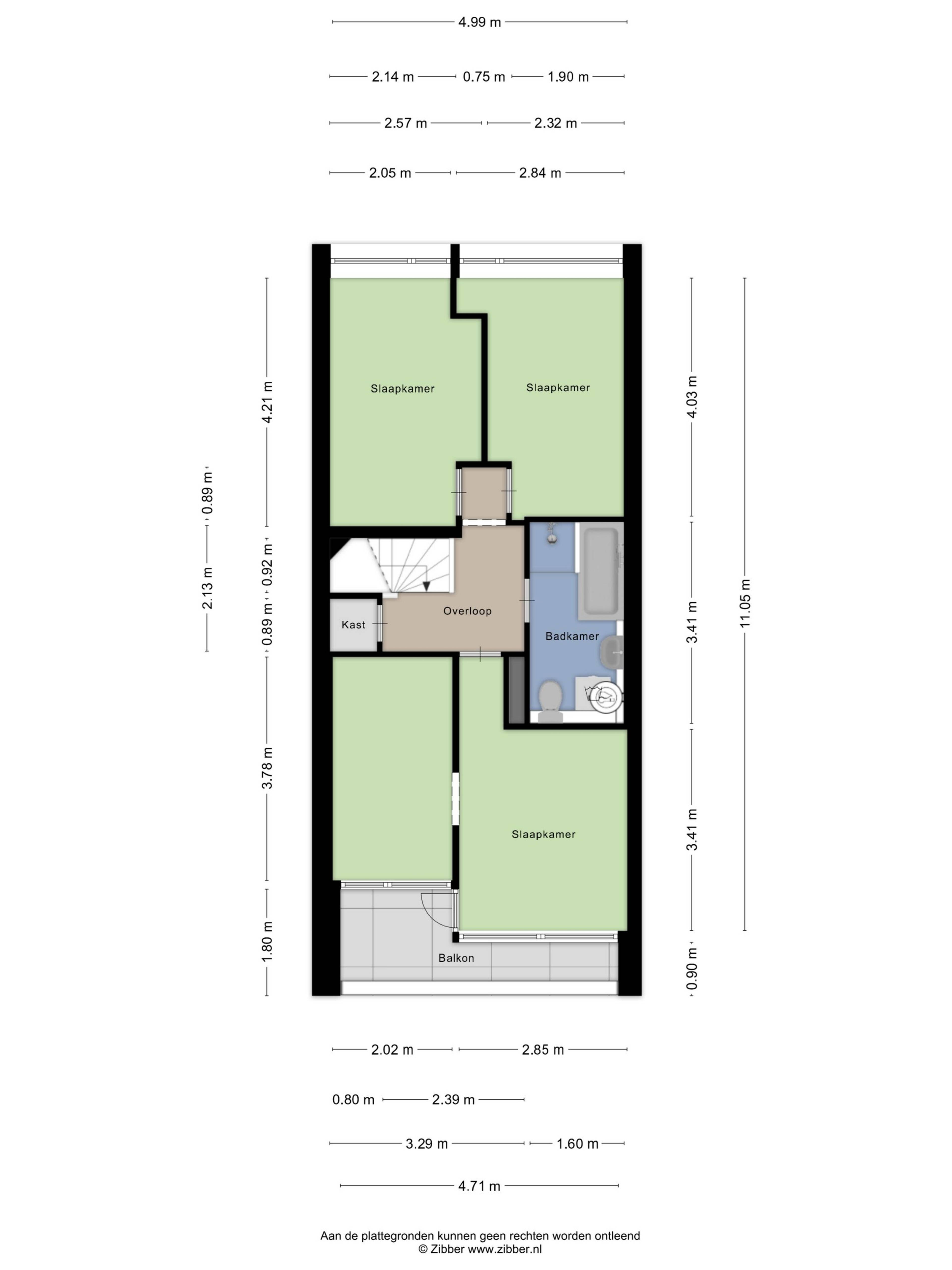 Via de trap kom je op de bovenverdieping, waar zich drie ruime slaapkamers en het balkon bevinden. De kamers zijn veelzijdig in te richten als slaap-, werk- of hobbyruimte. Aan de voorzijde liggen twee royale slaapkamers met uitzicht over het park, terwijl aan de achterzijde een slaapkamer is gesitueerd met voldoende ruimte voor kasten en directe toegang tot het zonnige balkon op het zuidwesten.