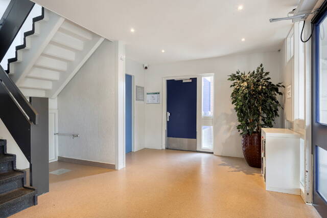 Verzorgde centrale entree met bellentableau, brievenbussen, trappenhuis en liftinstallatie die toegang biedt tot de verdiepingen en de bergingen.