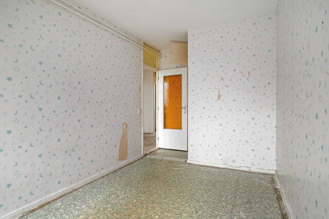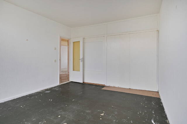 The apartment has two bedrooms. The main bedroom, located at the rear, benefits from plenty of natural light through its large window. The second bedroom, situated at the front, is ideal as a study, guest room, or hobby space and offers access to the front balcony. The separate toilet with small washbasin is located right next to the entrance, where you’ll also find the utility cupboard.