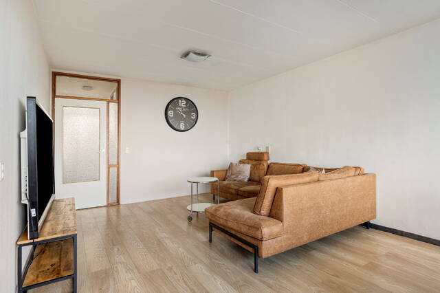 De woonkamer is royaal van opzet en dankzij de grote ramen bijzonder licht, met een prachtig uitzicht over het park en de omgeving. Vanuit de hal bereikt u tevens de keuken, die praktisch en efficiënt is ingericht, de drie slaapkamers, de fijne badkamer en het separaat toilet. Ook de bergingsruimte binnen de woning is vanuit de hal toegankelijk, wat extra gemak en opbergruimte biedt.
