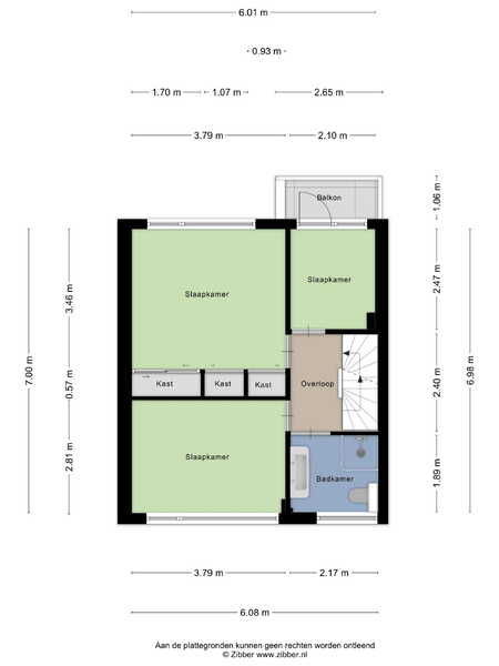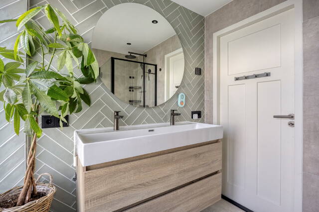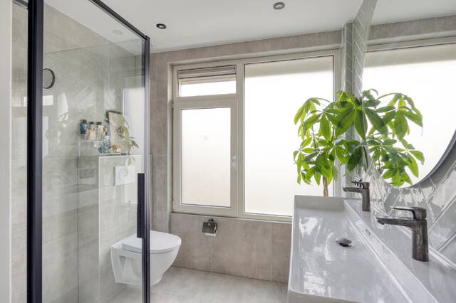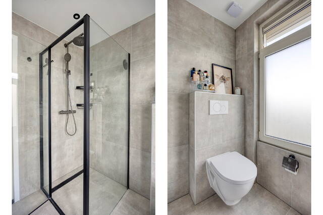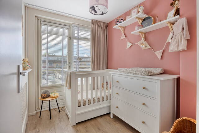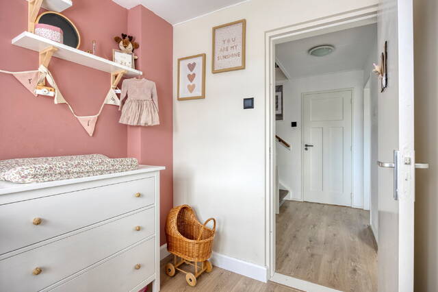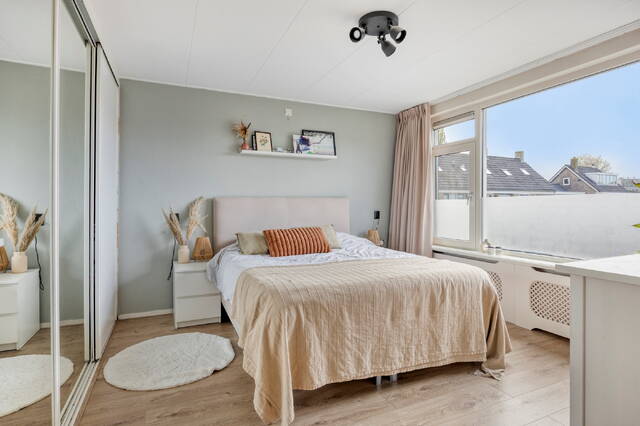 De overloop biedt toegang tot drie slaapkamers en de badkamer. Aan de voor- en achterzijde bevinden zich twee ruime slaapkamers. De derde kamer aan de achterzijde is geschikt als kinder- of werkkamer en geeft toegang tot het balkon. De moderne badkamer (2024) is gesitueerd aan de voorzijde en voorzien van een tweede toilet, wastafelmeubel en douche.