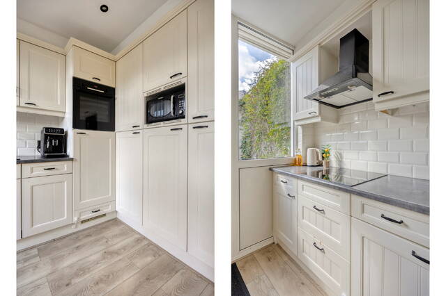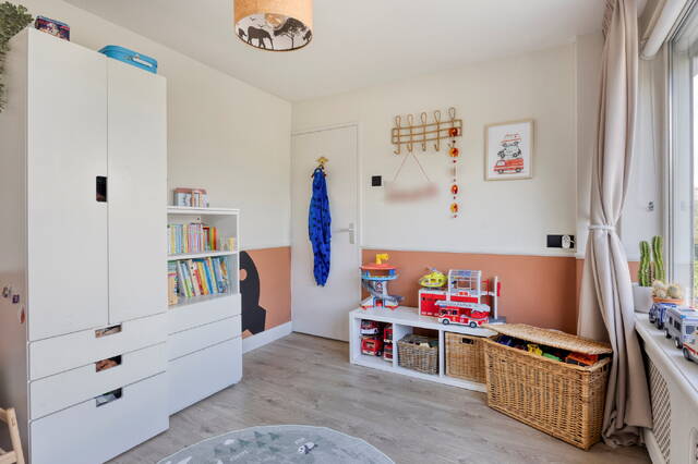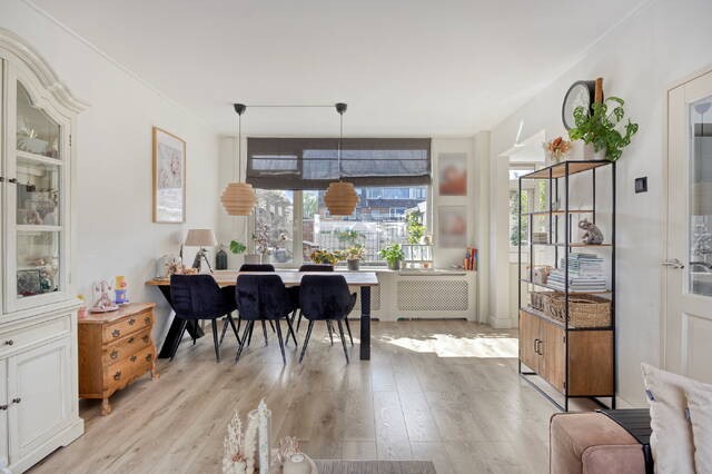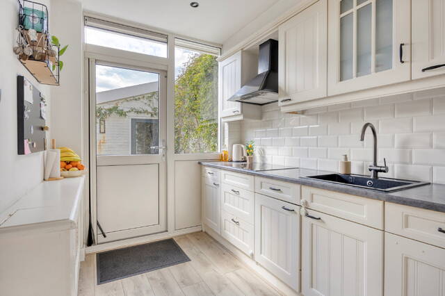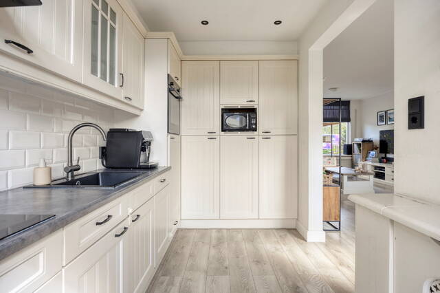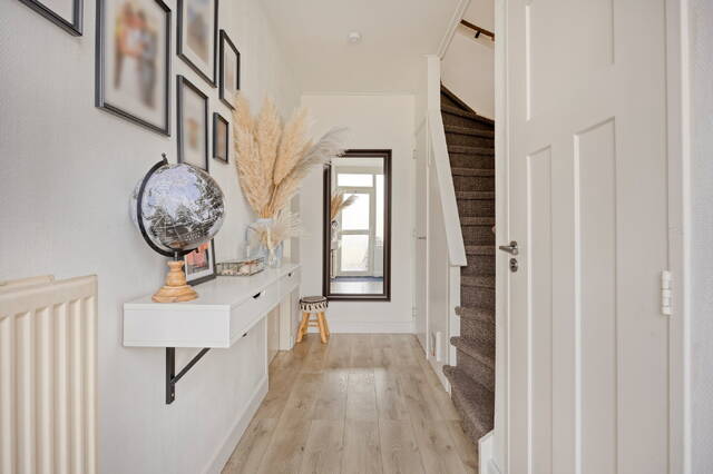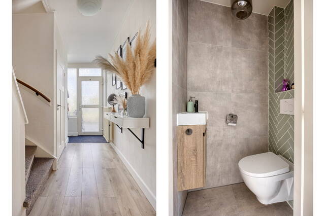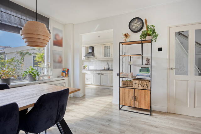 De verzorgde voortuin met aanlegplaats geeft toegang tot de entree van de woning. In de hal bevinden zich de meterkast, een modern toilet en een praktische garderoberuimte. De lichte doorzonwoonkamer heeft een prettige, rechthoekige indeling en biedt zowel aan de voor- als achterzijde veel lichtinval. Aansluitend ligt de halfopen keuken in landelijke stijl, voorzien van moderne inbouwapparatuur (circa 4 jaar oud). Door een slimme aanpassing is extra bergruimte gecreëerd in de keuken en hal. Vanuit de keuken is de zonnige achtertuin op het westen bereikbaar, met een ruime berging en een achterom naar een beschut pleintje met garages.